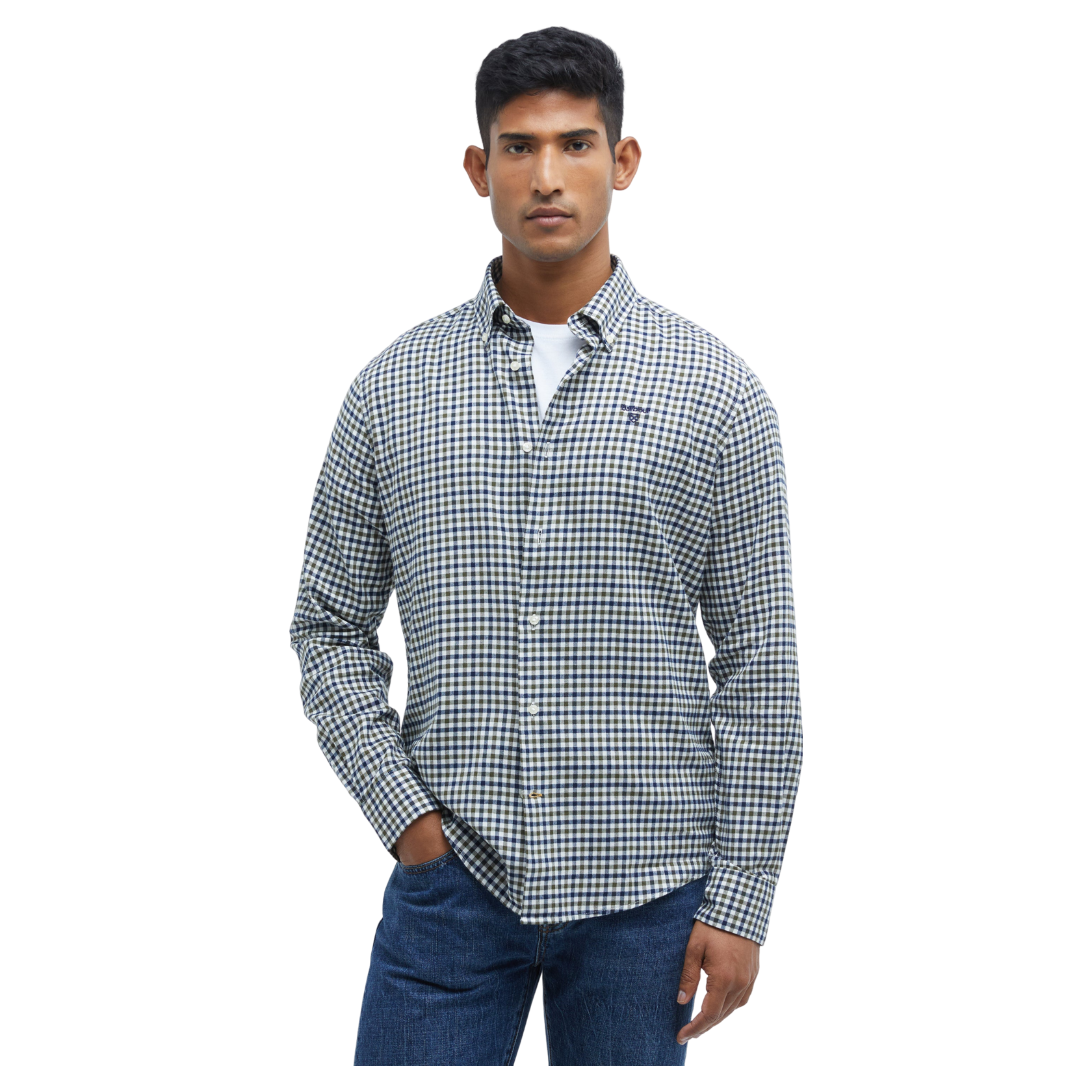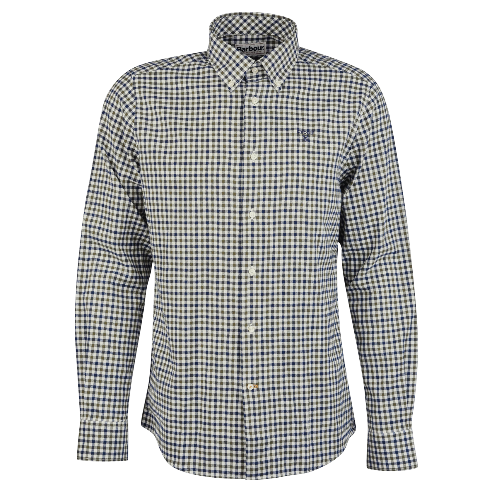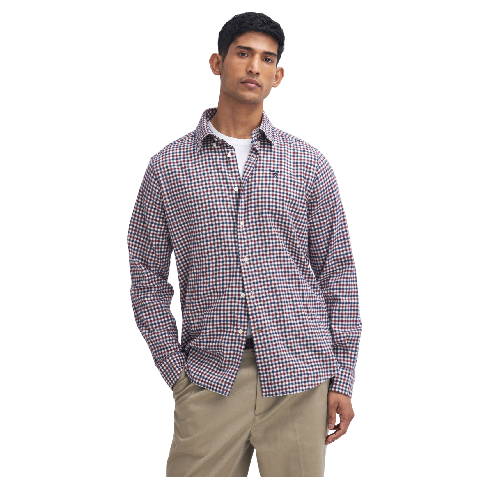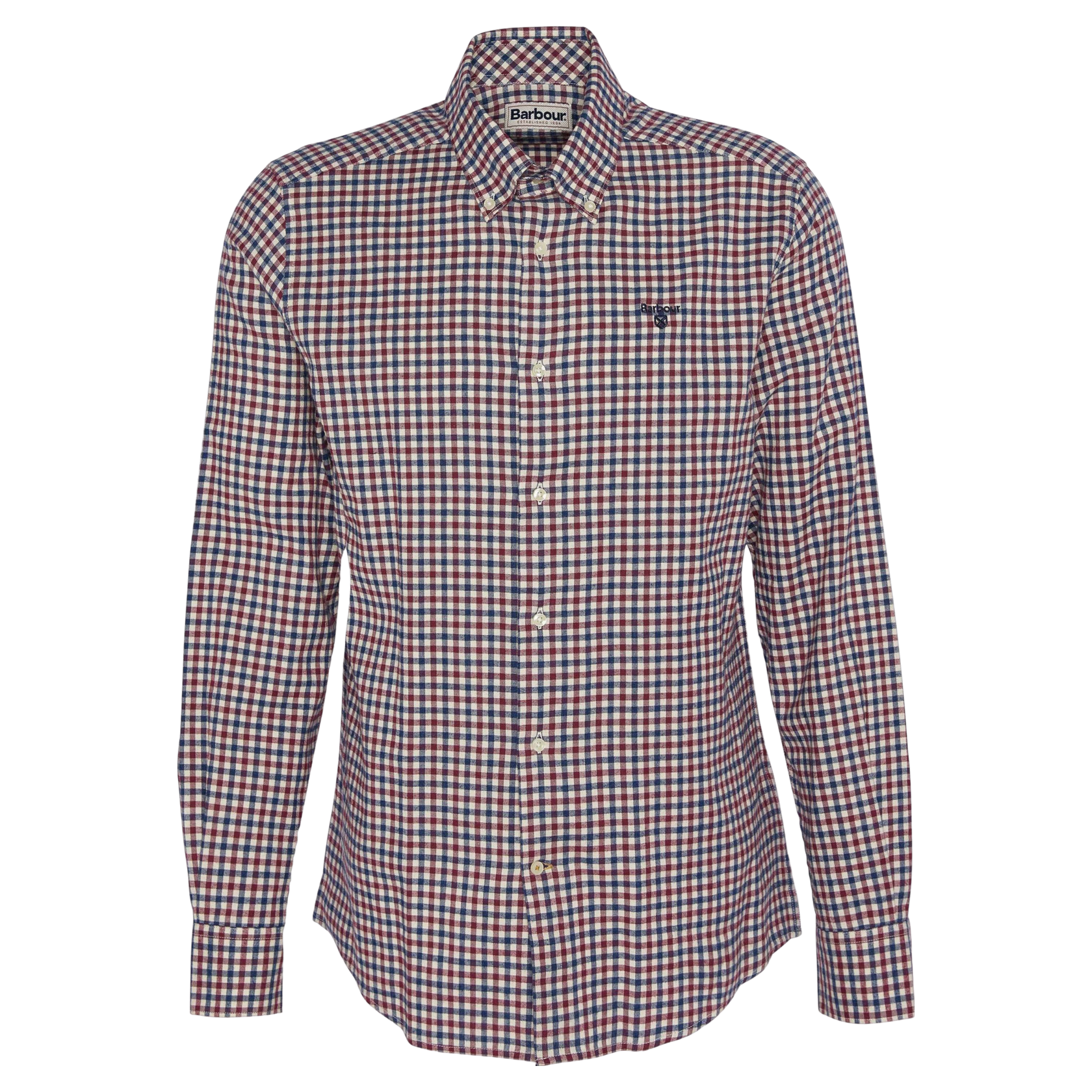 The Barbour Finkle Tailored Gingham Shirt features a classic checked design that enhances any wardrobe. With long sleeves, buttoned cuffs, and a button-down collar, it offers both style and practicality. An embroidered logo on the left chest adds a touch of sophistication. Ideal for casual outings or relaxed social gatherings, this shirt effortlessly combines comfort with everyday elegance.